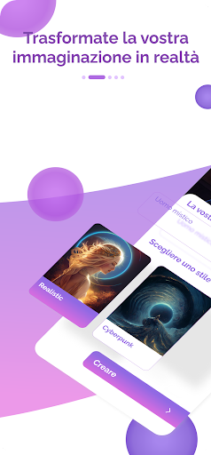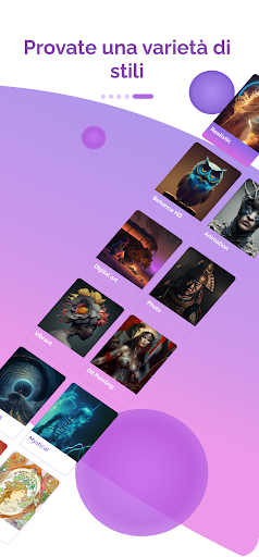 Con la nostra applicazione creativa potete generare immagini utilizzando l'intelligenza artificiale, che le rende uniche e affascinanti opere d'arte e vi fa diventare dei veri artisti.
