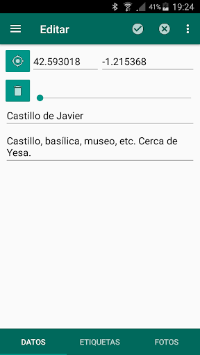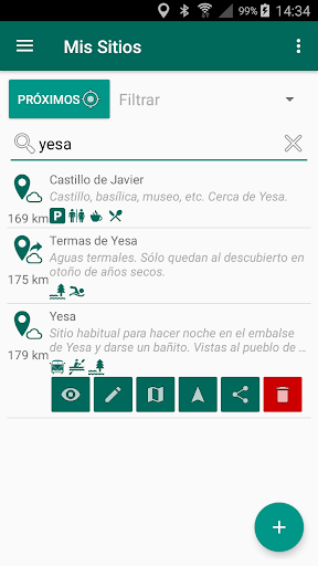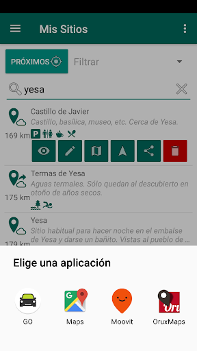 Aplicación que permite guardar sitios a partir de tu posición actual (o introduciendo manualmente las coordenadas) para poder acceder a ellos en cualquier momento y compartirlos. Puedes asignar diferentes etiquetas al sitio y luego buscar sitios filtrando por etiquetas. También te permite elegir tu programa de navegación preferido y abrirlo con las indicaciones para llegar hasta el sitio deseado desde tu posición actual.