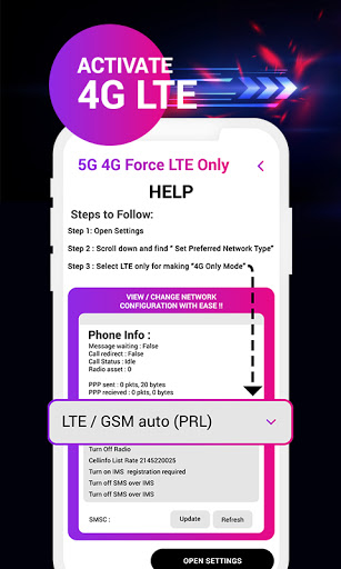 ✔ aperto & quot; 5g 4g force lte & quot;Impostazione in app.
