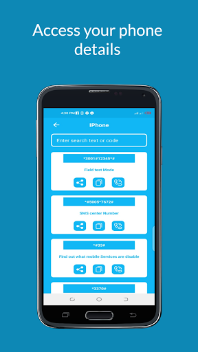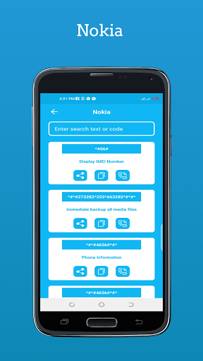 Codice segreto - Tutti i codici segreti mobili rilevano le informazioni nascoste del telefono selezionando direttamente il codice o copiandolo da esso.Il codice del telefono è riportato nell'applicazione e tramite esso è possibile accedere a tutte le informazioni nascoste del tuo dispositivo.