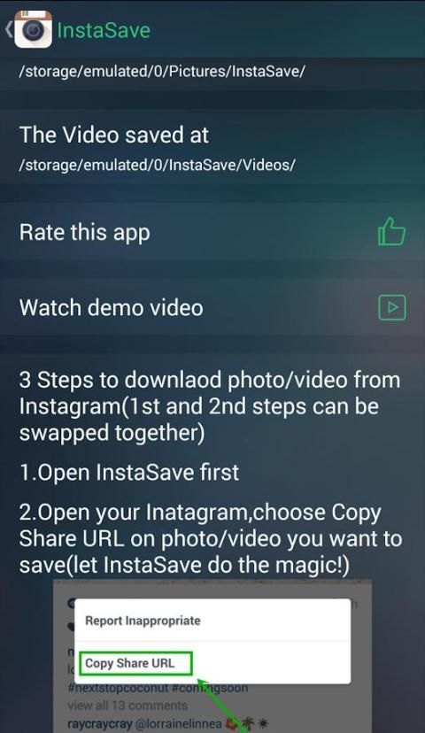 2. Open Instagram, choose “Copy Share URL” on photo/video you want to save, you can save many photos / videos in 1 time