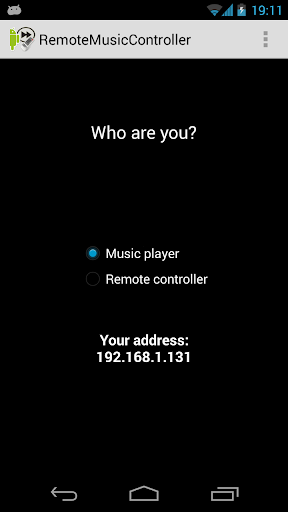 -Fai partire la musica sul dispositivo che intendi controllare e, sempre sullo stesso, fai partire Remote Music Controller selezionando Musica Player nella prima schermata.