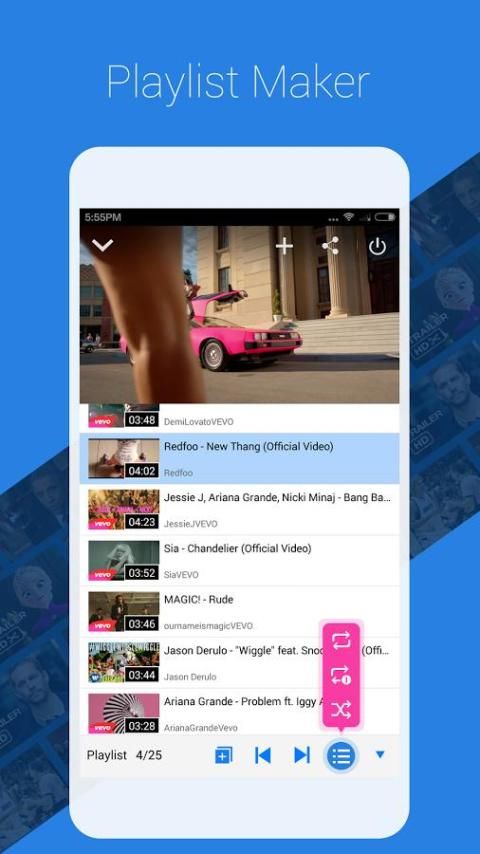 ✓.By searching a playlist, you could repeat, shuffle, single cycle, next, previous, pause your favourite videos