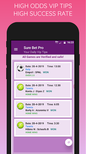 -Daily VIP punte: alte quote e tariffa da voi selezionata vittoria per gli scommettitori sportivi e consigli di Bonus giornalieri: Questo è un VIP / consigli gratuiti che selezionano con cura i giochi withing il giorno / settimana con alto tasso di vittoria e di alta probabilità. pensare ad esso come il vostro biglietto vincita settimanale