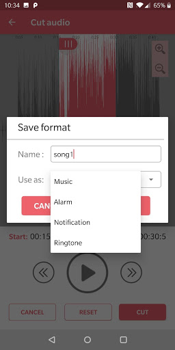 Set audio file to be cut / split / change format into ringtone, alarm tone of the phone.