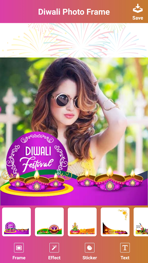 Photo frame for Diwali app you can add different Diwali text, Diwali greeting and your name.