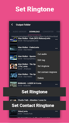 5. Set output as Ringtone or contact ringtone