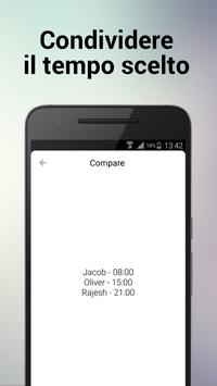È possibile convertire i tempi per i contatti e le città. App riconosce automaticamente i tuoi contatti e comprende i timezones e l'ora corrente (per coloro che impostano la posizione nel proprio profilo). Dopo di che puoi convertire il tuo tempo con il contatto o la città scelti, oltre a vedere la differenza di tempo in passato e in futuro. È utile per programmare incontri internazionali in più zone temporali.