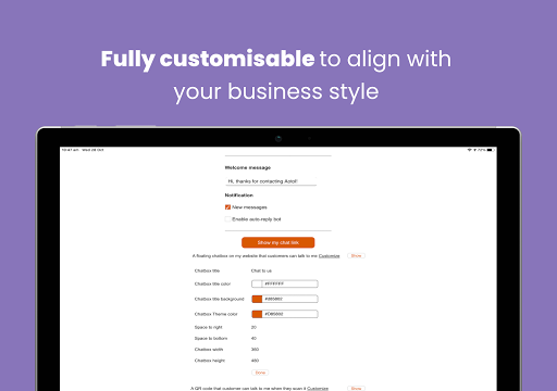 3 - Personalizzabile: modifica il colore, il testo, il titolo e la posizione del widget per allineare con la tua attivitàstile.Nessuna filigrana significa che la chatbox è completamente tua.