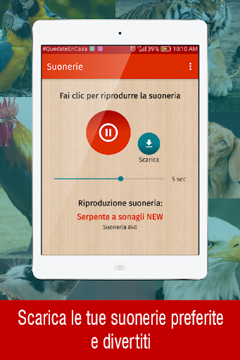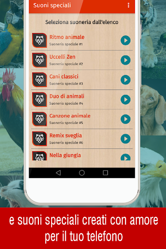 suonerie animali è un'app progettata appositamente per il tuo cellulare, con una grande raccolta di suonerie che puoi usare come: suonerie, toni sms, allarme o notifica.