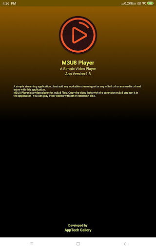 M3U8 Player è un'applicazione semplice del lettore video che può riprodurre qualsiasi URL video online validi.È in grado di riprodurre M3U8, HLS, MP4, Dash e molti altri collegamenti video supportati da Internet.