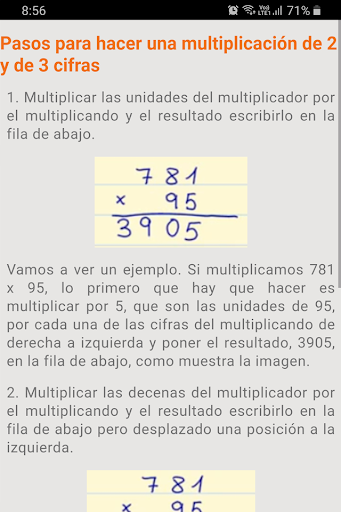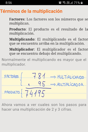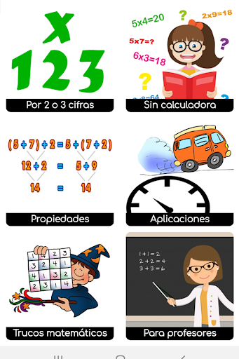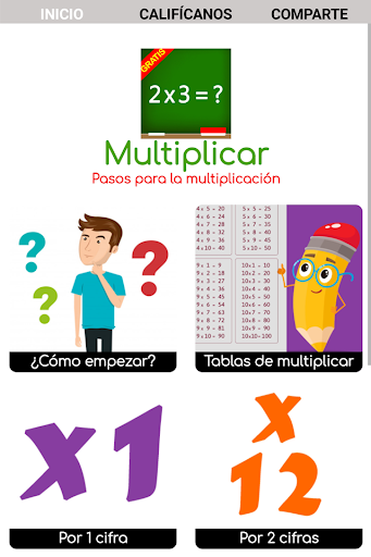 La app "Cómo Multiplicar - Guía Rápida para Primaria" consiste en un mini-curso matemático enfocado en el aprendizaje de la operación de la multiplicación. Con esta app los niños podrán repasar las tablas de multiplicar y consolidar los conocimientos adquiridos en el colegio. Cada sección está hecha para aprender de una forma divertida a multiplicar y está estructurada por niveles para que el aprendizaje sea progresivo.