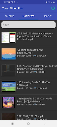Lo zoom Video Player utilizza la libreria di base predefinita del lettore multimediale Android che supporta tutti i principali formati video.