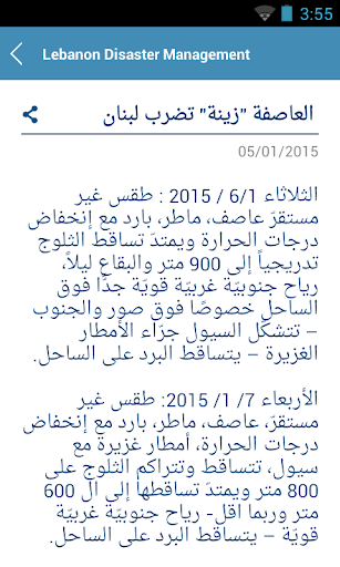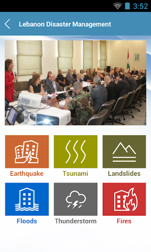 Conoscenza, Scienza e Tecnologia svolgono un ruolo importante e potenziare le persone a prepararsi e gestire i disastri. Con l'obiettivo di creare soluzioni per ridurre i rischi di disastro naturali e per preparare meglio e rispondere ai principali disastri naturali, l'unità di gestione del rischio di disastro -DRM Unità ha sviluppato questa applicazione mobile destinata al pubblico libanese per aiutare a sensibilizzare la loro consapevolezza, preparazione, preavviso e risposta sui disastri. Come affermato dal capo dell'Ufficio delle Nazioni Unite per la riduzione del rischio di disastro La sig.ra Margareta Wahlström, "La tecnologia e la scienza hanno un ruolo da svolgere nel rendere il pianeta un posto più sicuro e più resistente".