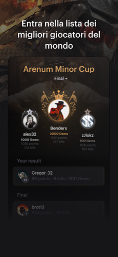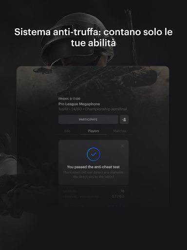 Fai un passo verso il mondo Cybersport nei nostri tornei e nelle sfide giornaliere! Combatti contro altrigiocatori oppure porta a termine attività divertenti... sta a te scegliere!