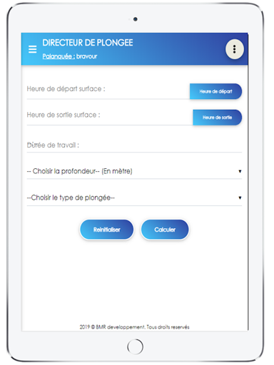 Per tutti i gestori di immersioni subacquee in formazione o funzionamento, l'applicazione di immersione pubblicitaria (Direttore di immersione) è disponibile su mobile e tablet. Grazie a questa applicazione è possibile gestire più switch o treno per creare calcoli di immersione in meno di 3 minuti dal tuo cellulare, ovunque tu sia anche senza Internet.