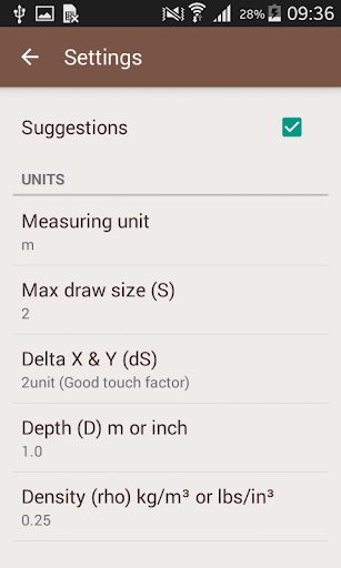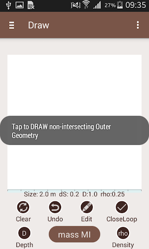 The default drawing window size is 2 m and snap size is 0.02 m. You can change by tapping the settings.