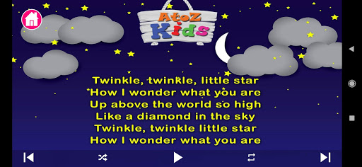 Chi non ama ascoltare e cantare le filastrocche? I bambini in particolare amano cantare le filastrocche nei melodini popolari. Aapp A to z Kids aiuta i tuoi figli a memorizzare le rime e come cantare con un tono adeguato. I magnifici sfondo flashcard e testi per ogni rima possono tenere i bambini impegnati e intrattenuti l'apprendimento dell'apprendimento e cantando le rime popolari.