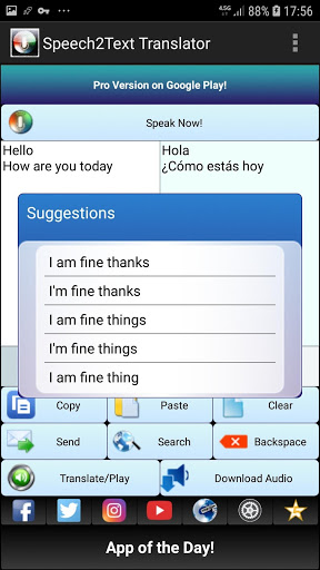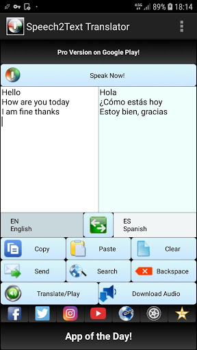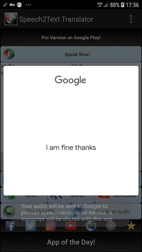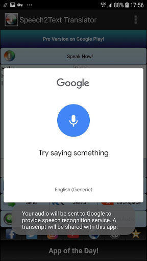 Il traduttore di discorso per il testo è un riconoscimento vocale, il testo alla parola (TTS) e l'applicazione del traduttore istantaneo, che consente di prendere appunti facilmente parlando. Puoi copiare queste note negli Appunti e ascoltare. È possibile inviare e condividere queste note con e-mail, SMS, social media e varie applicazioni di messaggistica istantanea come WhatsApp, Viber, Skype e VS. Puoi anche cercare queste note sul Web. Discorso per testo, testo a parola (TTS) e funzionalità di traduzione sono tutte in una sola applicazione! Parla, traduci, ascolta, invia e ricerca usando il discorso per il traduttore di testo! Puoi anche utilizzare questo software per l'educazione linguistica. Puoi imparare a parlare tutte le lingue. Godetevi il traduttore Speech2Text!
