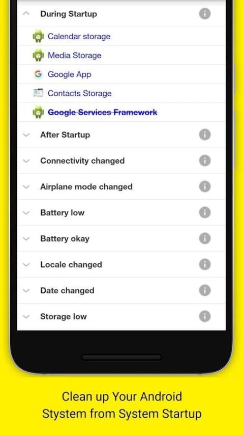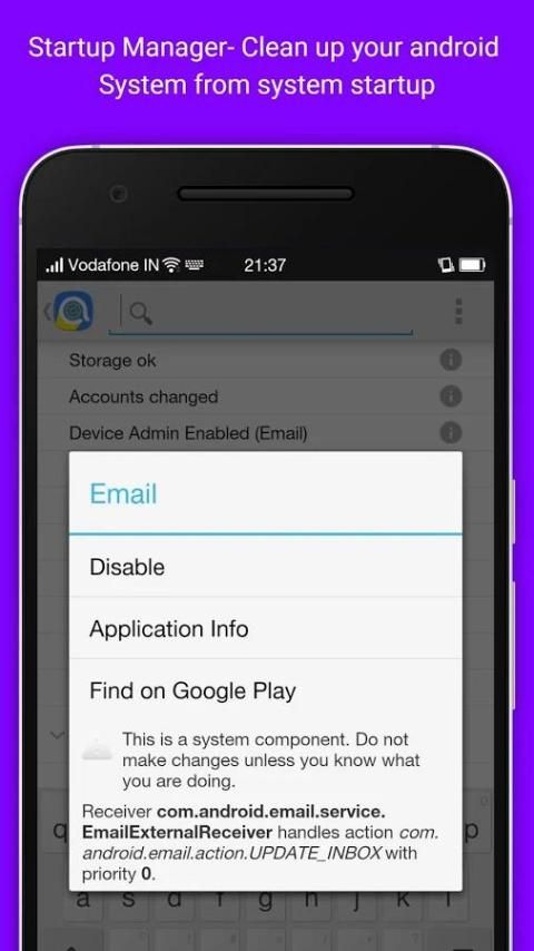 AutoStart Manager app to keep control your device automatically, it's means that, use this application to control on what application do behind your back, so use this application to you know which event is useful for you or not, otherwise disable it and speed up your device. No generate any catch memory and any load when start up your phone, boot because first you disable not required events ....