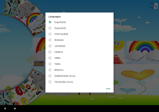 BabyLearn is a kid-friendly app to entertain kids with lots of pictures. BabyLearn teaches the proper pronunciation of each word, which helps children to learn and understand each word in a perfect way. It speaks each word in UK English by the help of Text To Speech. We are also going to introduce many new languages or translations for each word.