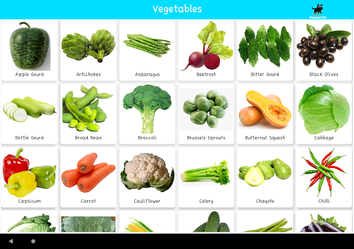 - Includes different kinds of vegetables with their proper images.