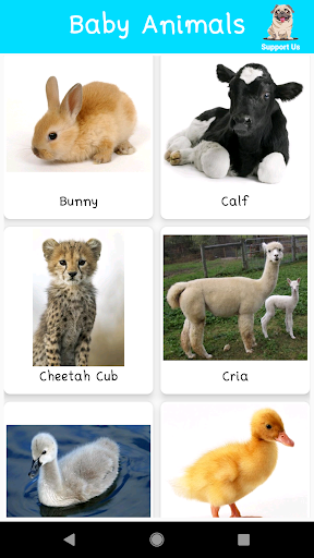- Includes different kinds of baby animals with their proper images.