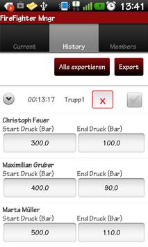 - gleichzeitig mehrere Timer für Atemschutz-Trupps (Timer läuft auch bei Schließen der App weiter)