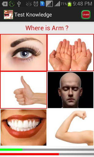 Learn Body Parts can be used to teach kids about different human body parts with beautiful clear pictures.