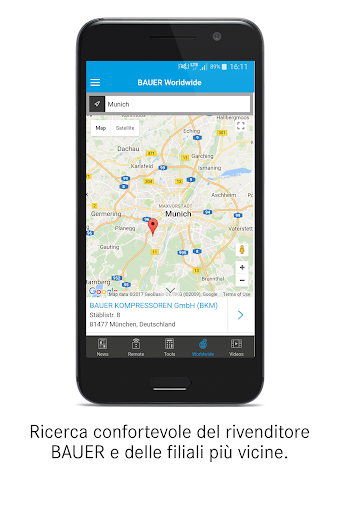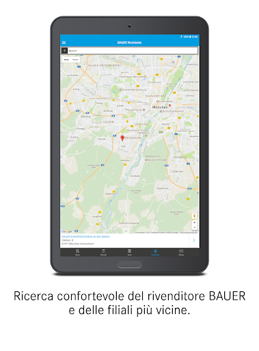 Una comoda funzione di ricerca della filiale BAUER più vicina e dei relativi partner di vendita e di assistenza nel mondo.