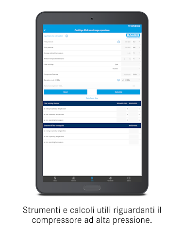 Qui, oltre ad un convertitore delle unità di misura e delle portate standard, sono reperibili utili strumenti di calcolo per stabilire la durata dei filtri con/senza B-KOOL, prevedere il tempo di riempimento delle bombole e valutare la quantità della condensa prodotta.