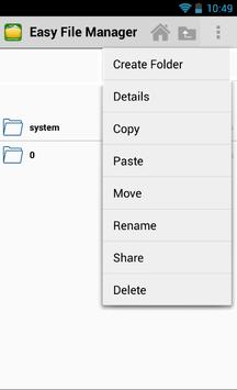 Easy File manager free download, create folder, copy, paste, move, relabel, share, remove... your folders and files. Display info, running processes, backup your programs to SD card.
