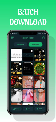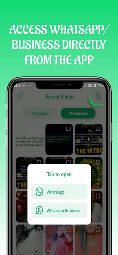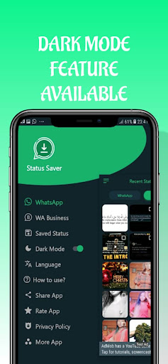 Caratteristica in modalità scura disponibile Salva più immagini e video una volta Salva rapido Share and Repost Stato con un solo click Whatsapp direttamente dall'app