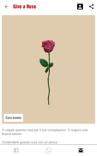 Puoi anche dedicare una rosa a qualcuno e condividerla attraverso i social media e la posta elettronica. In questo modo puoi rendere felici amici, parenti e conoscenti inviando loro la tua rosa.