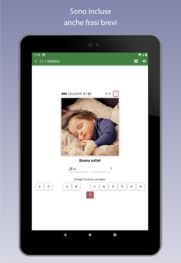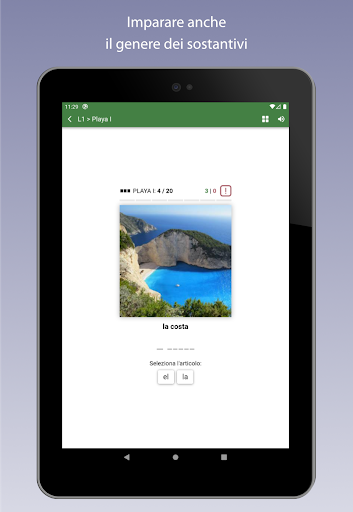 - Utilizzo offline: Avrai bisogno di una connessione internet solo la prima volta che usi l'app, per scaricare nuove parole, ma poi puoi lavorare OFFLINE ogni volta che vuoi.