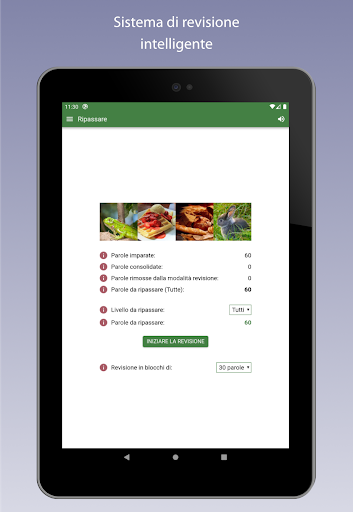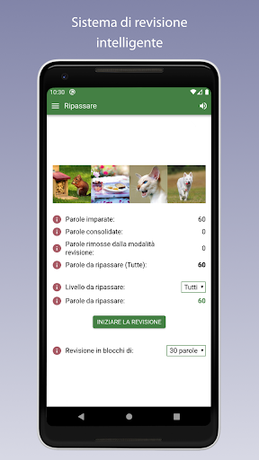 - Sistema di revisione intelligente che ti farà ripassare la parola in base alle tue risposte corrette e agli errori. Più spesso si sbaglia una parola, più spesso questa parola verrà ripassata in modo da poter finire per memorizzarla.