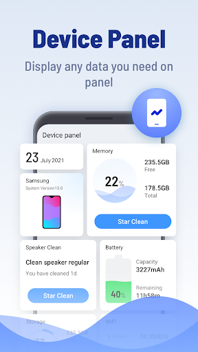 Bingo Cleaner fornisce anche la visualizzazione delle prestazioni del dispositivo nella funzionalità del pannello del dispositivo compreso le prestazioni della CPU, la durata della batteria, lo stoccaggio del telefono, l'utilizzo della RAM. È inclusa anche altre caratteristiche di utilità come il test della velocità di rete e il boost di velocità è inclusa anche in modo che queste funzionalità siano facilmente accessibili.