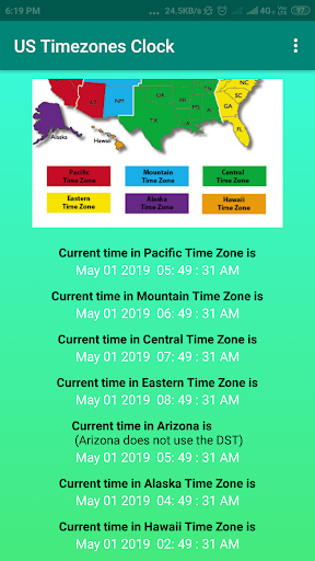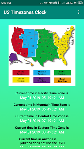 This handy app gives the overview view of all the major timezones of US, and also two additional timezones i.e Alaska timezone and Hawaii timezone.