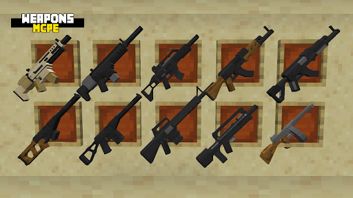 Il Mod Guns for mcpe weapons mods and addons migliorerà il gameplay con le armi in Minecraft pocket edition. Con questa mod, ora è possibile utilizzare armi reali in Minecraft e dominare il gioco.
