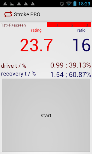 4. Under the rating and ratio value we is shown the time and percentage for drive and recovery. The time is taken as an average for 1 stroke, in SS.00.