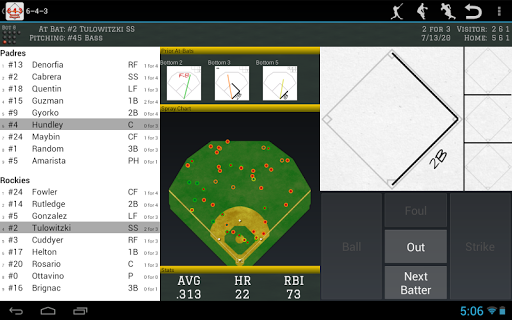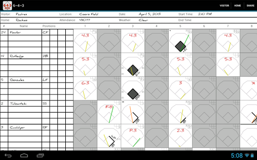 Perché dovresti imparare Un sistema di punteggio completamente nuovo? Alcune app punteggi vogliono intervistarti su ogni gioco. Con 6-4-3, però, semplicemente si abbatte cosa è successo come faresti sul tuo cornice. Usa il dito per disegnare una linea da casa al primo al secondo, e 6-4-3 registra un doppio.