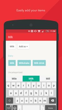 , quantities and even categories to your shopping list