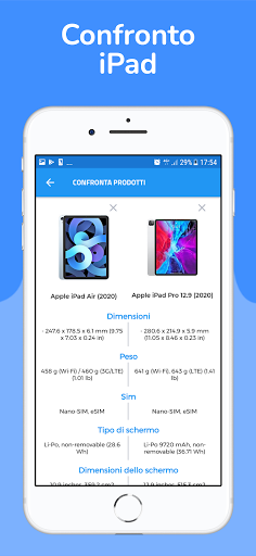 - Confrontare i telefoni in base alle specifiche e confrontare i loro prezzi.