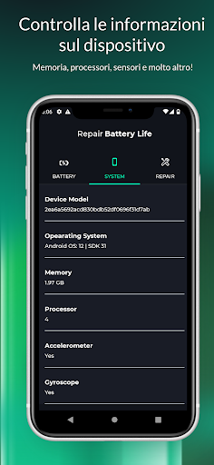Repair Battery Life is an app focused on improving the quality and duration of the battery by doing a deep scan of the system to detect and correct errors in battery performance.