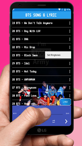 The most popular MP3 BTS song music album player application in addition to being able to see the lyrics of the selected song, this application can be run without an internet connection or offline.