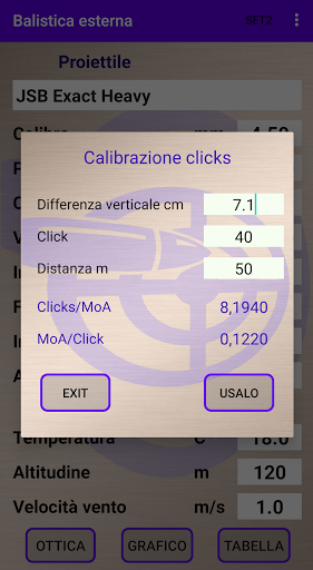 Comprende anche una calcolatrice per la calibrazione dei click/MoA.