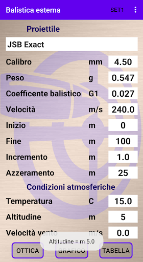 Calcolatore balistico preciso e semplice nell'utilizzo con inserimento dei dati rapido in una unica pagina e 5 preset configurabili.