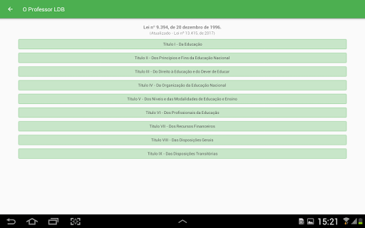 Professor LDB è una domanda di dispositivi mobili che mira a mettere a disposizione la legge delle linee guida e delle basi dell'istruzione nazionale agli insegnanti che intendono condurre offerte pubbliche o private nell'area educativa.