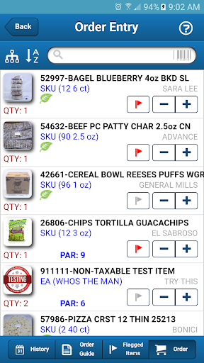 · Quickly and easily switch between order history, order guides & flagged items