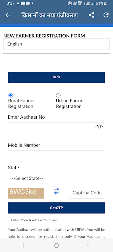 Il numero di cellulare e il numero di Aadhaar sono obbligatori per registrarsi in questo schema e il richiedente deve essere un agricoltore dall'India.
